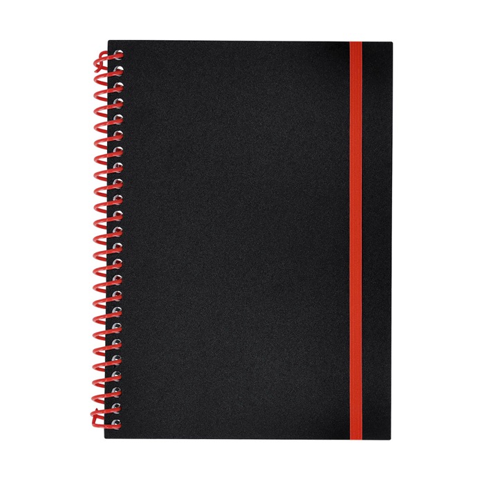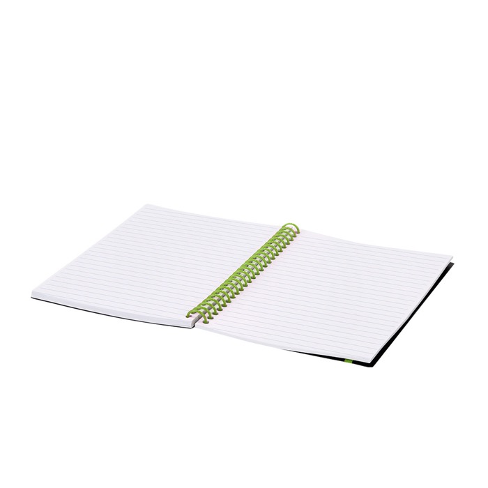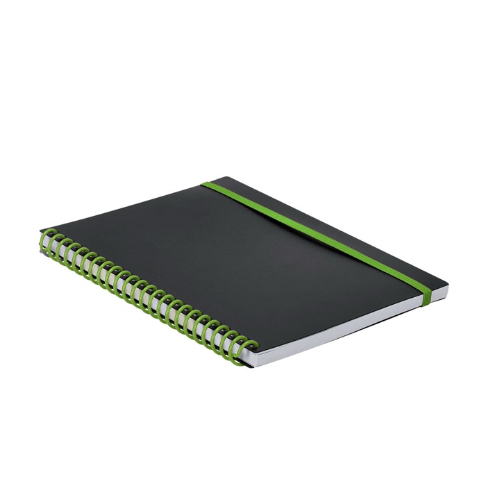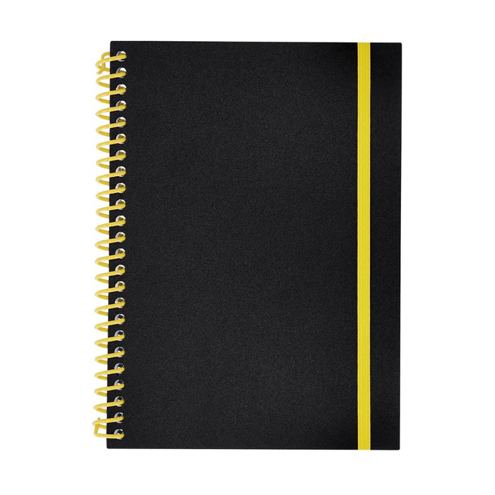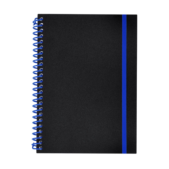Caderno de argolas com capa flexível de plástico, desenhado para uso diário no escritório, reuniões e visitas comerciais. Contém 80 folhas pautadas brancas que tornam fácil tomar notas rápidas e manter a informação ordenada. A fita elástica a condizer com as argolas mantém-no fechado na mochila ou pasta, o que evita amarrotados e folhas soltas. Opção prática para ações de boas-vindas, formações internas ou entregas em feiras com imagem corporativa.