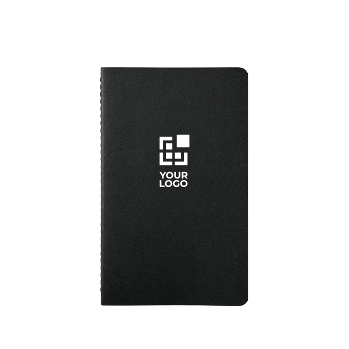 Caderno com capa de cartão e cantos arredondados, pensado para uma utilização contínua no escritório e em reuniões. Apresenta costuras visíveis na lombada, que reforçam o acabamento, e um bolso interior para guardar notas soltas ou cartões. Inclui 80 páginas lisas em papel cor marfim de 70g/m², além de 16 folhas finais destacáveis para arrancar e partilhar apontamentos quando necessário. Papel com Certificação de Sustentabilidade Florestal. Opção prática para formações, eventos e ações de marca com logótipo.