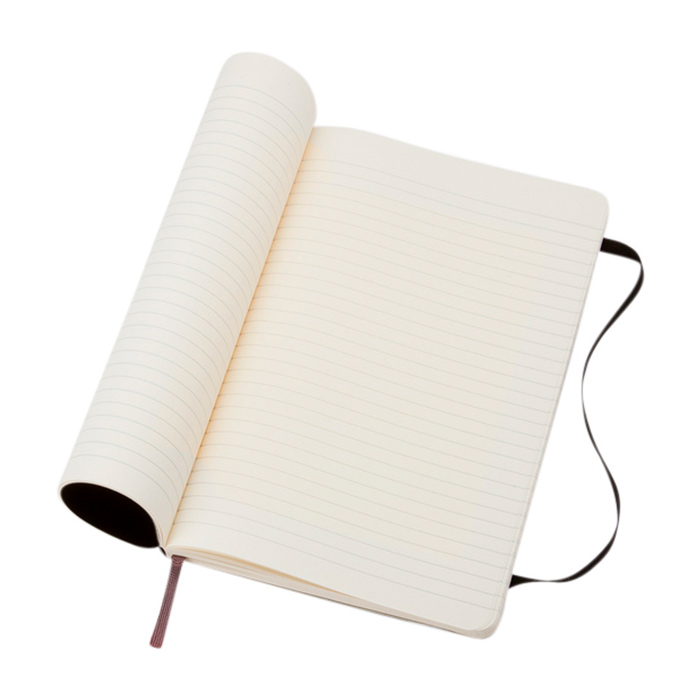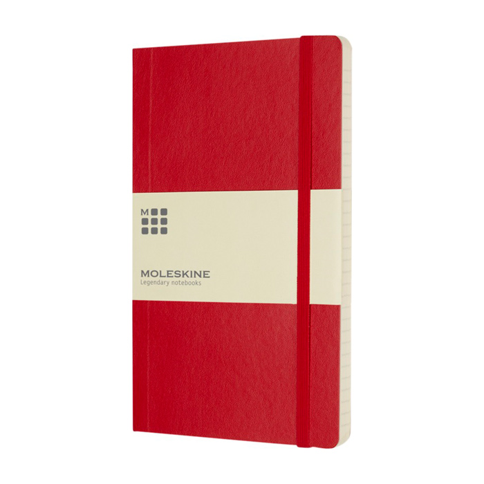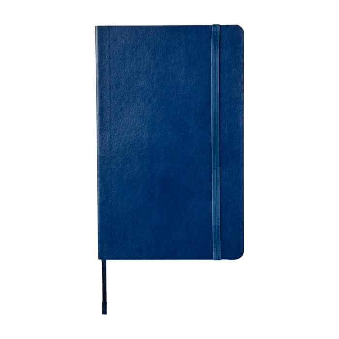 Caderno Moleskine Classic de capa mole, com capa em cartão e cantos arredondados, pensado para o uso diário no escritório ou em movimento. Inclui papel cor marfim, sem ácido, pautado, para escrever de forma organizada e manter as notas legíveis. Inclui fecho elástico para proteger o conteúdo, marcador de fita para localizar páginas rapidamente e aviso Em caso de perda. O bolso interior expansível ajuda a guardar cartões e documentos soltos. Opção prática para formações, eventos e integração de colaboradores com logótipo.