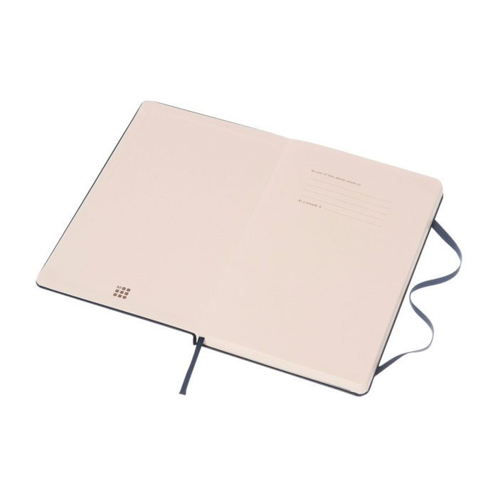 Caderno Moleskine Classic com aviso ''em caso de perda'' e folhas lisas