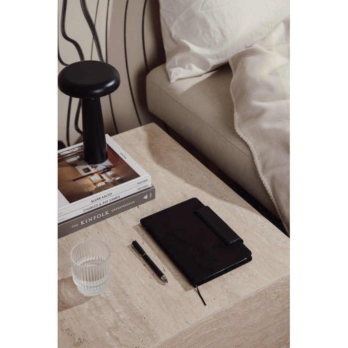 Caderno A5 com capa elegante, composto por 160 páginas pautadas (80 folhas) de papel reciclado. Fabricado em pele sintética reciclada com detalhes de poliuretano. Certificado por GRS (Global Recycled Standard), o que garante a rastreabilidade dos materiais reciclados em toda a cadeia de fornecimento. O conteúdo reciclado total calcula-se com base no peso do produto: 50 % de papel reciclado certificado GRS e 6 % de poliéster reciclado certificado GRS.