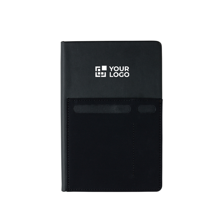Ofereça praticidade e design com este caderno A5, uma ferramenta essencial para quem valoriza a organização. Com 160 páginas pautadas de 80 g/m2 em tom creme. A capa frontal, feita de couro e pele sintética, não só lhe dá um acabamento refinado, como também inclui um compartimento para telemóveis até 8 cm, compatível com dispositivos como o iPhone 7 Plus. Além disso, conta com porta-canetas e um espaçoso bolso para documentos, garantindo que tudo o que a sua equipa precisa está ao alcance deles. Entregue em saco e a granel.