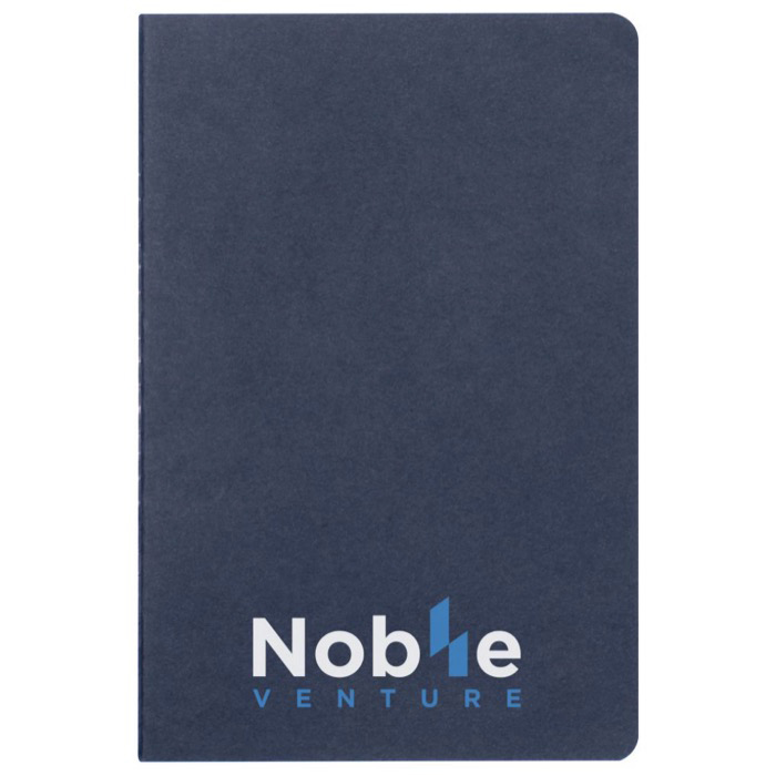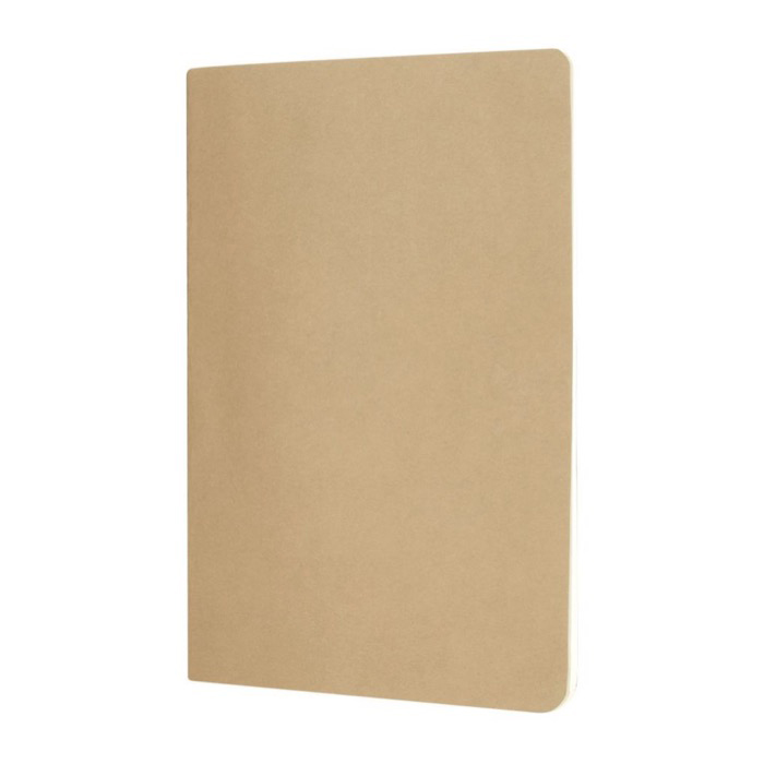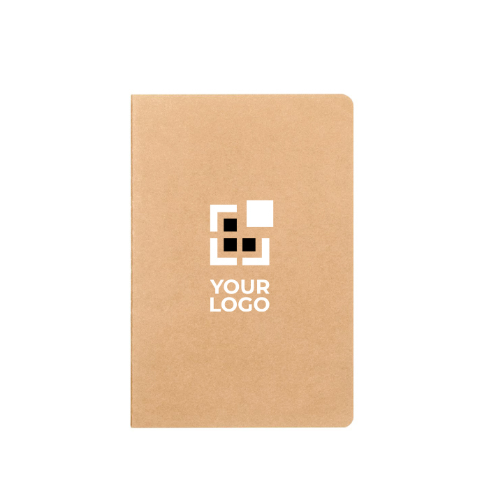 Ganhe visibilidade na próxima feira dando cadernos como este, de tamanho A5, com folhas de papel de cor creme e quadriculados. Simples mas super populares.
