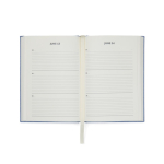 Diário de papel reciclado GRS A5, que permite documentar pensamentos e experiências diárias durante três anos, com três colunas pautadas e marcas de data em cada página. Regista reflexões, ideias e momentos memoráveis, transformando cada frase num recordação preciosa para revisitar. Completo com um marcador e uma capa de tecido, é funcional e elegante. Certificado pelo GRS (Global Recycled Standard), que garante que toda a cadeia de fornecimento de materiais reciclados está certificada. O conteúdo total reciclado baseia-se no peso total do produto. Este produto contém 83% de papel reciclado certificado GRS.