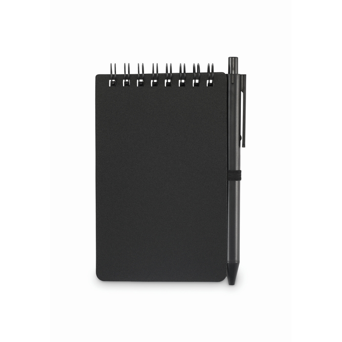 Bloco de notas hidrófugo com capa de plástico e caneta