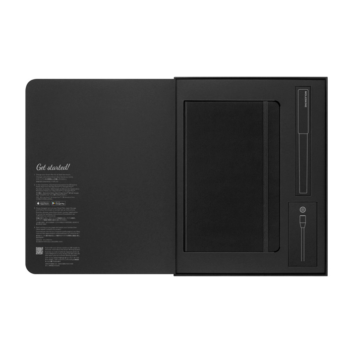 Conjunto de escrita inteligente com caderno e caneta Moleskine, concebido para passar da nota em papel para o ficheiro digital sem mudar a sua forma de trabalhar. Inclui caderno clássico grande pautado, caneta inteligente, carregador magnético e recarga. O papel com Ncodes capta cada traço e envia-o para a app Moleskine Notes, para criar uma versão digital editável e fácil de partilhar. Bateria de longa duração e pega confortável para uso diário. Útil em formações, reuniões e eventos empresariais com tomada de notas ágil.