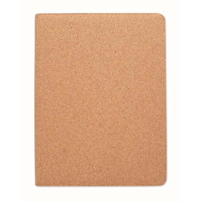 Portefólio dobrável de cortiça, 30 folhas listradas e caneta A4