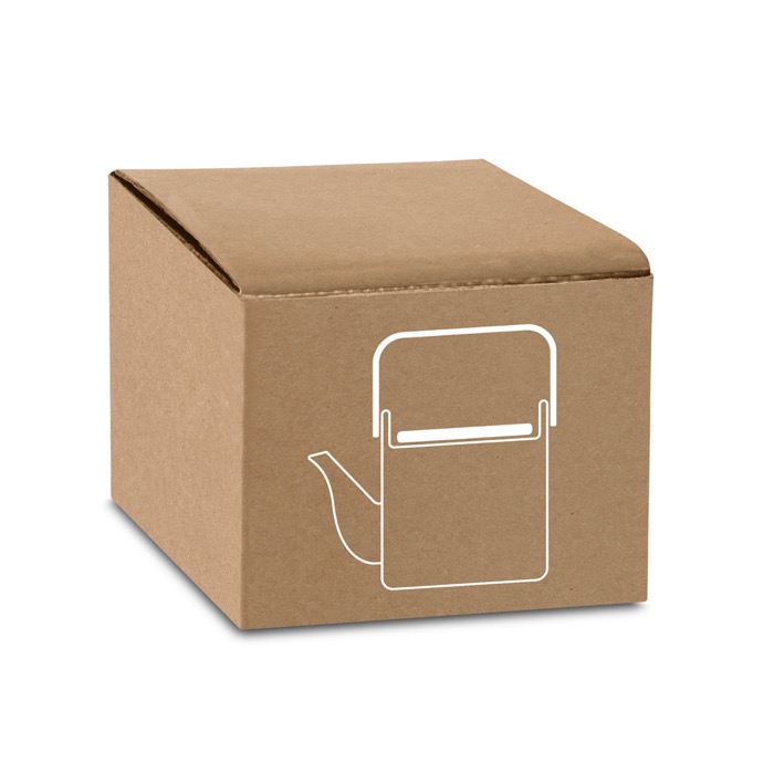 Bule em cerâmica com tampa e pega em bambu. Capacidade até 700 ml. Fornecido em caixa oferta de papel kraft.