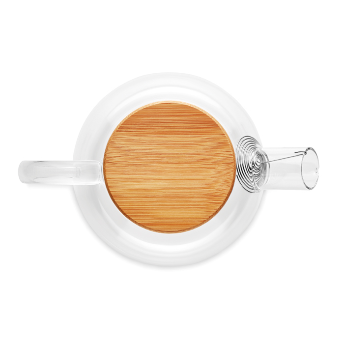 Bule de vidro borossilicato alto com infusor em aço inoxidável e tampa de bambu. Capacidade 850 ml. O bambu é um produto natural pode haver pequenas variações de cor e tamanho por item, o que pode afetar o resultado final da impressão.