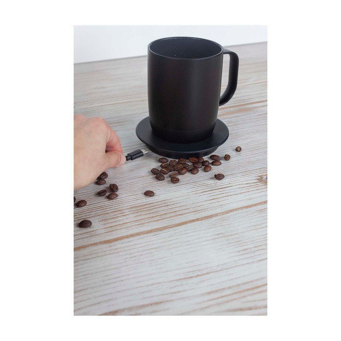 Caneca inteligente com sistema de controlo de temperatura para manter a bebida no ponto desejado até 1,5 horas por carga. Dispõe de bateria de longa duração e porta-copos de carga para conservar o calor continuamente quando é colocada na base. O ecrã LED (díodo emissor de luz) facilita o ajuste entre 50 °C e 62,5 °C, de acordo com o tipo de bebida. Conta com impermeabilidade IPX6 (proteção contra jatos de água) para enxaguar debaixo da torneira, apesar de se recomendar lavar à mão. Opção prática para escritórios, receções ou ações de marca de uso diário.