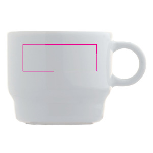 Chávena e prato de porcelana de alta qualidade. A chávena tem uma grande área de impressão. O prato triangular oferece espaço adicional à volta da chávena. Produzida na Europa.