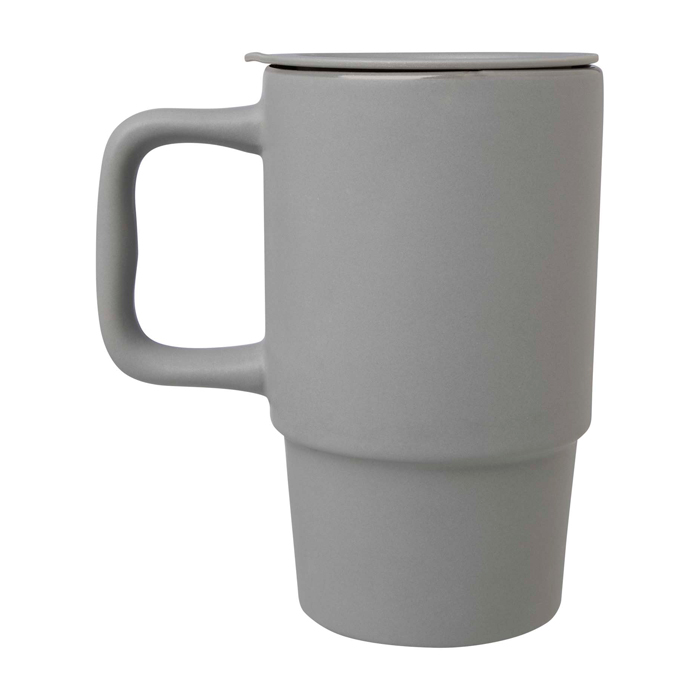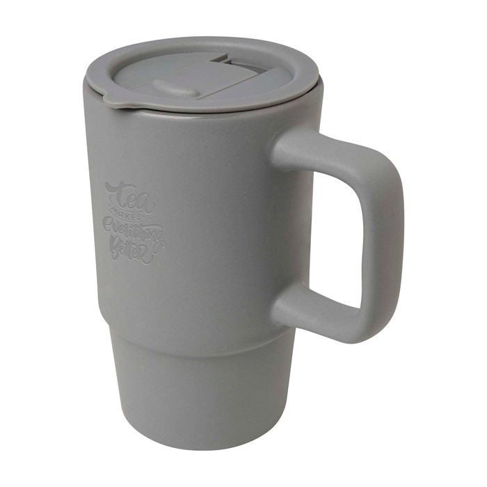 Caneca de cerâmica com asa ampla e tampa antiderrames. Design de acabamento mate que ostenta estilo e praticidade em cada gole. Adequada para lava-louça.