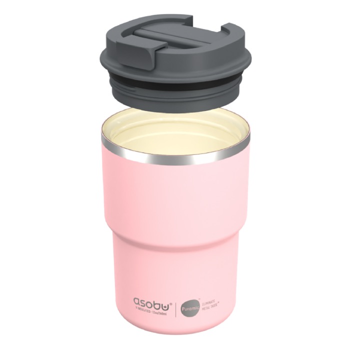 Este copo Coffee Express tem todas as vantagens de um copo térmico normal, mas com o revestimento cerâmico Asobu® No Metal Taste (Puramic), este copo também garante que o sabor perfeito da sua bebida favorita não se altera. O suave revestimento cerâmico Puramic conserva o sabor da sua bebida, enquanto o exterior de aço inoxidável isolado a vácuo mantém as bebidas quentes durante todo o dia. A tampa de abertura rápida à prova de fugas é fácil de usar. Com uma capacidade de 350 ml, este copo cabe debaixo de quase todas as máquinas de café e na maioria dos porta-copos, confortavelmente no carro.