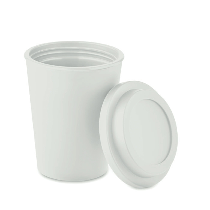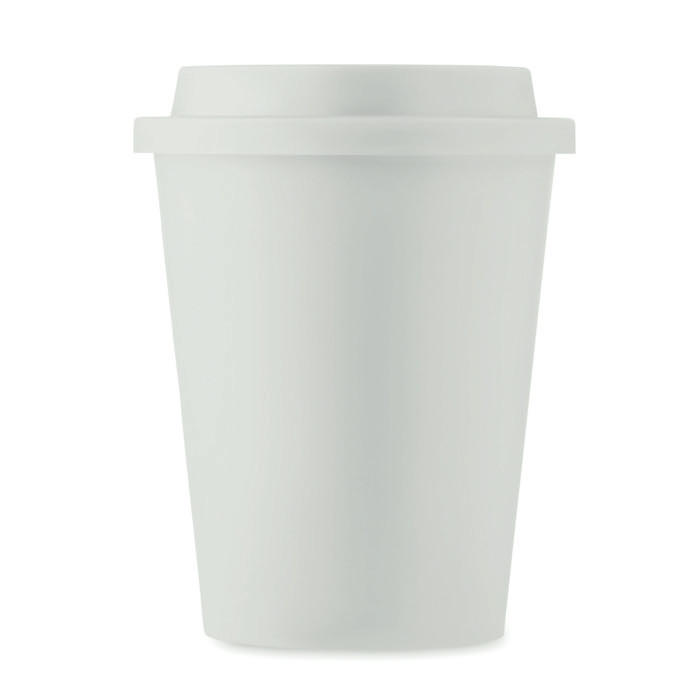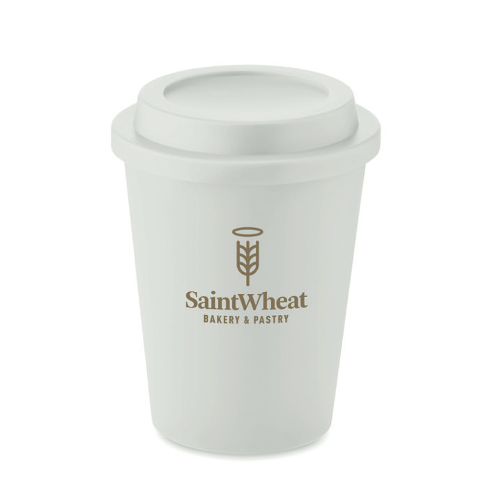 Um simples copo takeaway personalizado feito de PP e de dupla parede, pelo que será capaz de manter as bebidas quentes durante mais tempo.