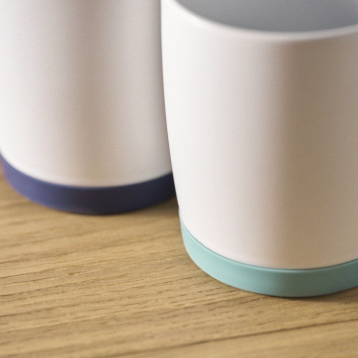 Caneca de cerâmica branca mate com base de silicone colorida 300 ml
