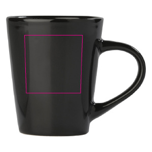 Caneca de cerâmica com design cónico. Grande superfície de impressão.