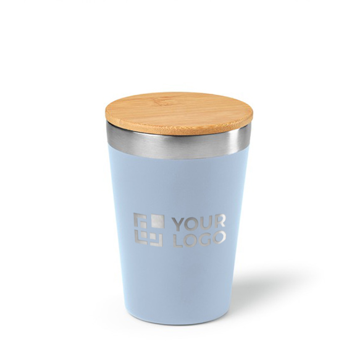 Copo térmico de aço inoxidável reciclado com tampa de bambu 300ml