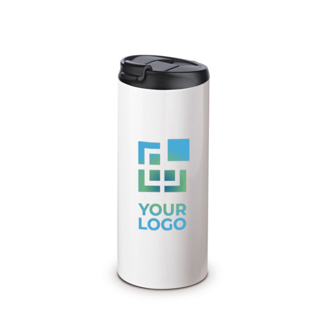 Copo térmico publicitário hermético com tampa de plástico. Grande superfície de marcação e sublimação de alta qualidade para um logótipo a cores espetacular.