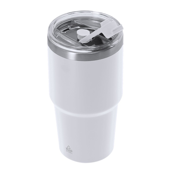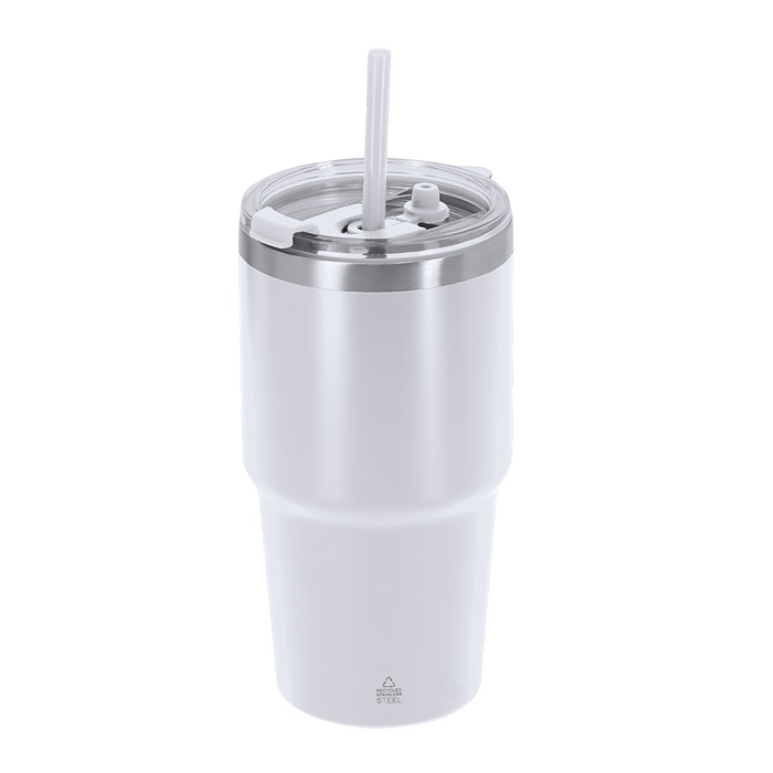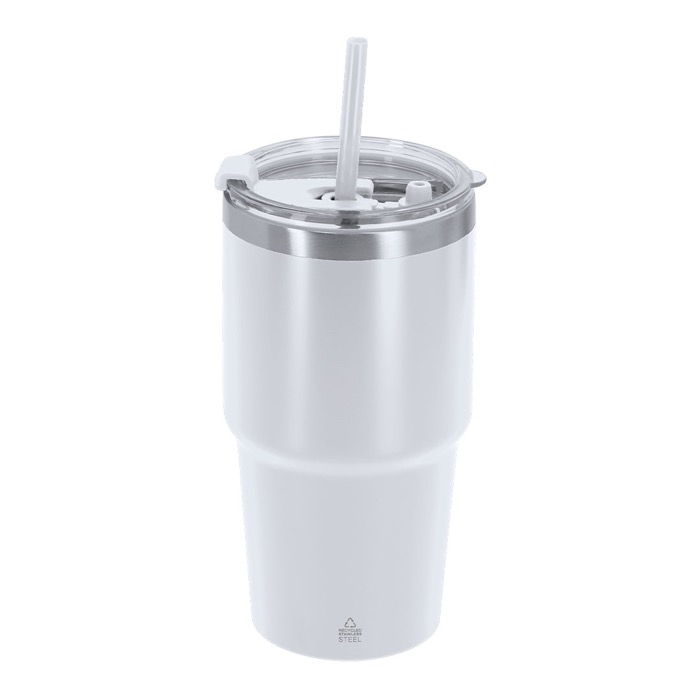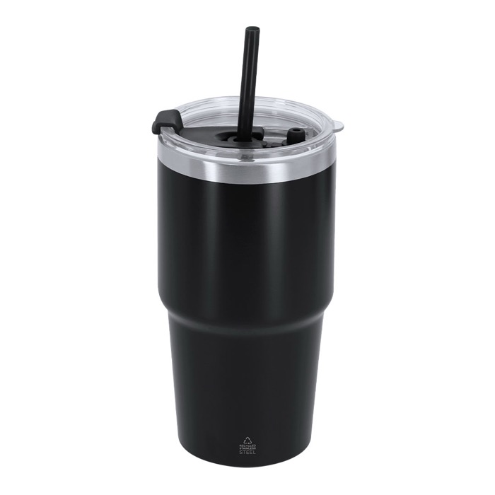 Copo térmico de aço inoxidável reciclado de parede dupla com capacidade de 650 ml, pensado para uso diário no escritório ou reuniões. Inclui sistema de bebida duplo para se adaptar a preferências distintas: orifício com fecho hermético e palhinha integrada. Quando se remove a palhinha, inclui tampa para manter o fecho hermético e evitar derrames. Mantém o calor até 3 horas e frio até 6 horas. Opção prática para merchandising corporativo e presentes de boas-vindas no posto de trabalho.