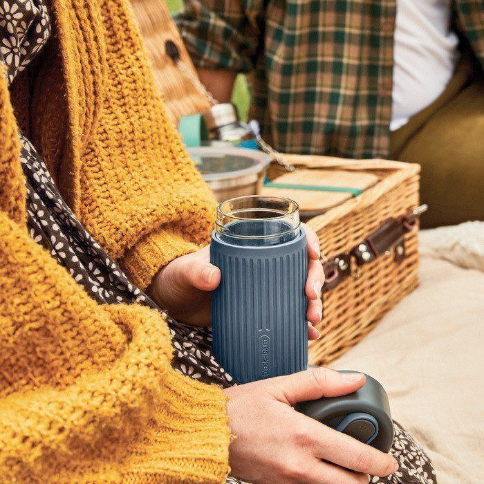 Copo de viagem térmico de vidro, manga de silicone Black & Blum 340 ml