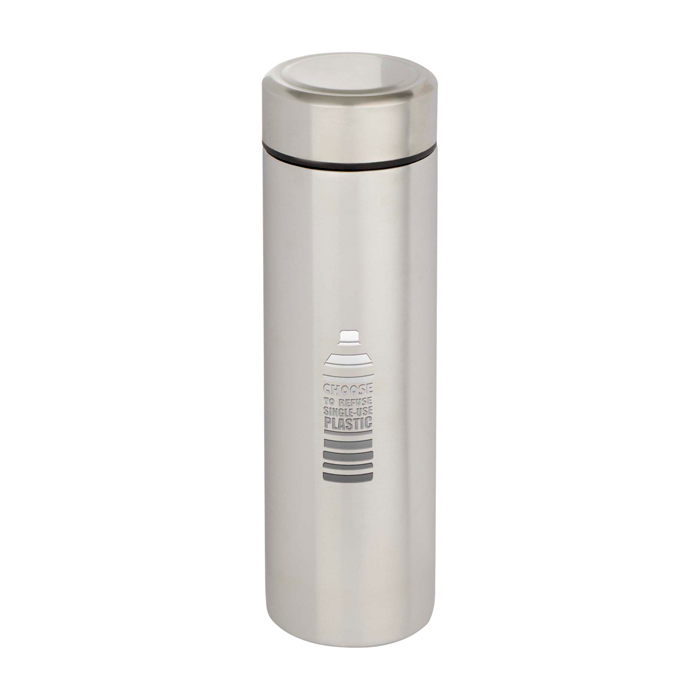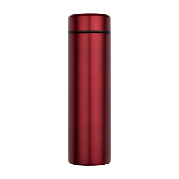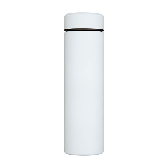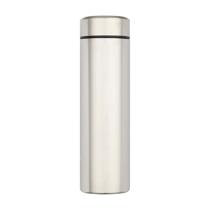 Garrafa térmica de aço inoxidável de parede dupla com isolamento, concebida para manter as bebidas à temperatura desejada durante mais tempo. Contém um filtro de chá amovível que facilita a preparação de infusões sem resíduos e simplifica a limpeza. O fecho à prova de fugas ajuda a evitar derrames na mochila ou pasta e o formato foi pensado para uso diário e deslocações. Capacidade de 450 ml para café, chá ou água no escritório, eventos e ações de marca com logótipo.