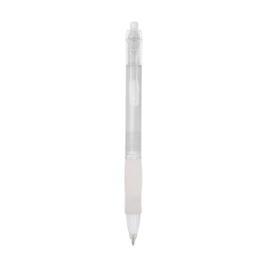 Caneta com cilindro colorido translúcido, com grip de borracha macia e elementos transparentes. Clipe transparente, durável e resistente. Tinta azul.