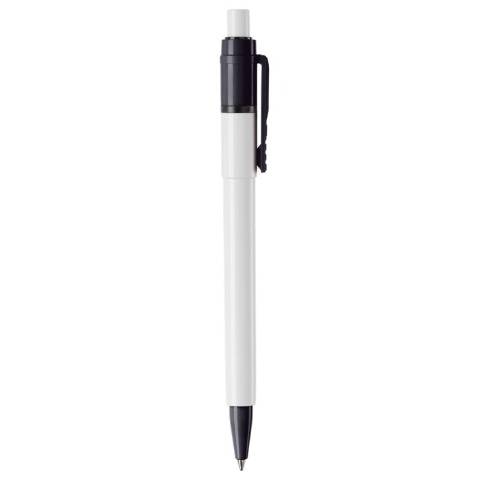 Caneta com corpo e botão brancos, com clipe e ponta coloridos. A recarga é uma recarga Jumbo sintética e inclui tinta de escrita azul. Inclui um mecanismo de pressão e é fabricada em ABS, fabricada na Europa. A partir de encomendas de 5.000 unidades, pode escolher a sua própria combinação de cores.