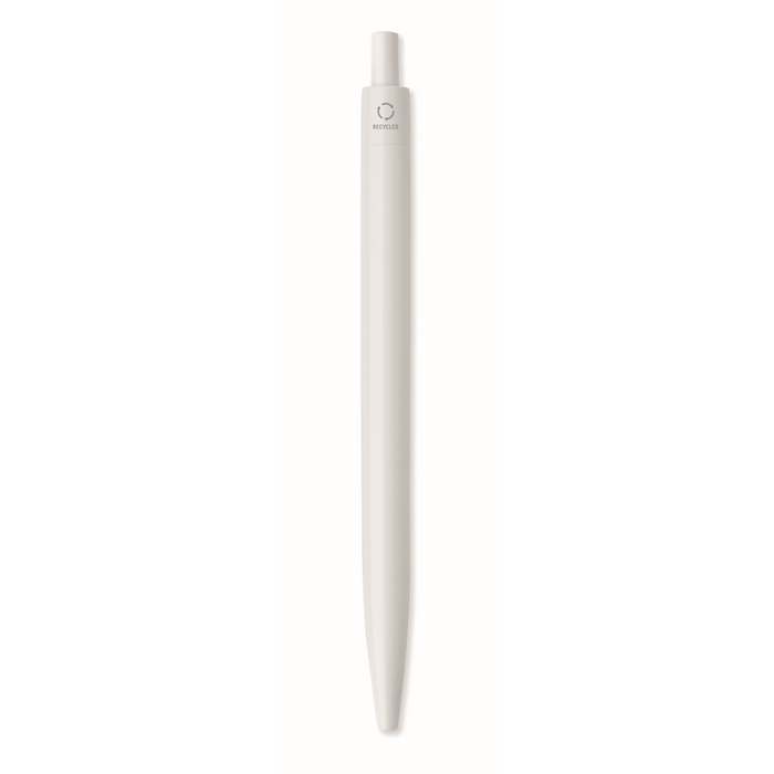 Caneta de ABS reciclada com tinta azul, projetada para uso diário no escritório e eventos. Proporciona escrita fluida e constante para notas rápidas, assinaturas ou reuniões. O corpo ligeiro facilita que a leve em bolsos, blocos de notas ou pastas sem adicionar muito volume. O acabamento de plástico torna-a prática para pedidos volumosos e distribuição interna. Adequada como material de apoio em receções, feiras e formações ou como brinde empresarial em ações de angariação e acompanhamento comercial.