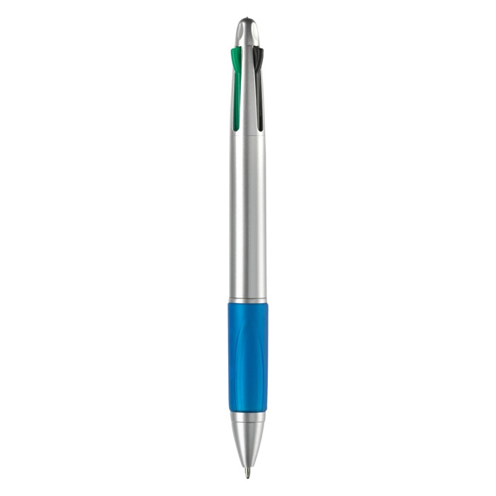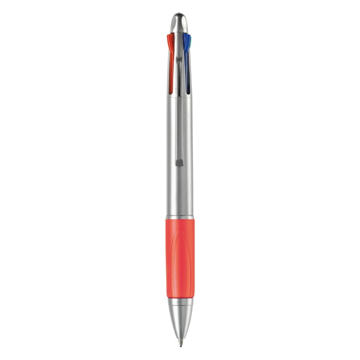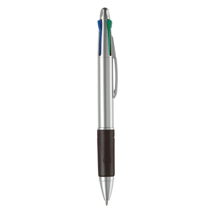 Uma caneta para escritório 4 em 1 que combina funcionalidade e estilo com 4 opções de cor de tinta e uma pega confortável, ideal para múltiplas tarefas.