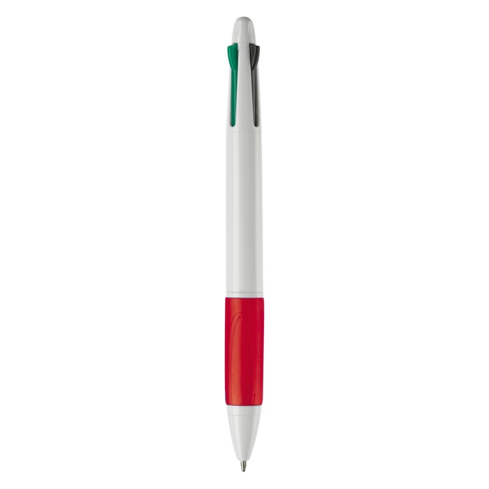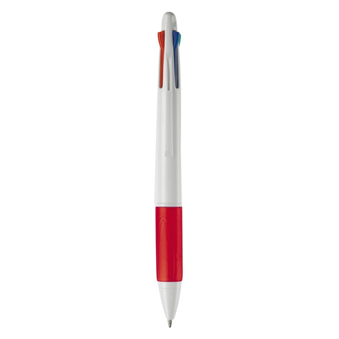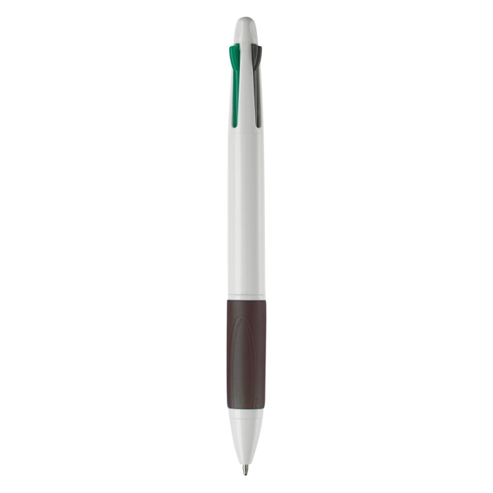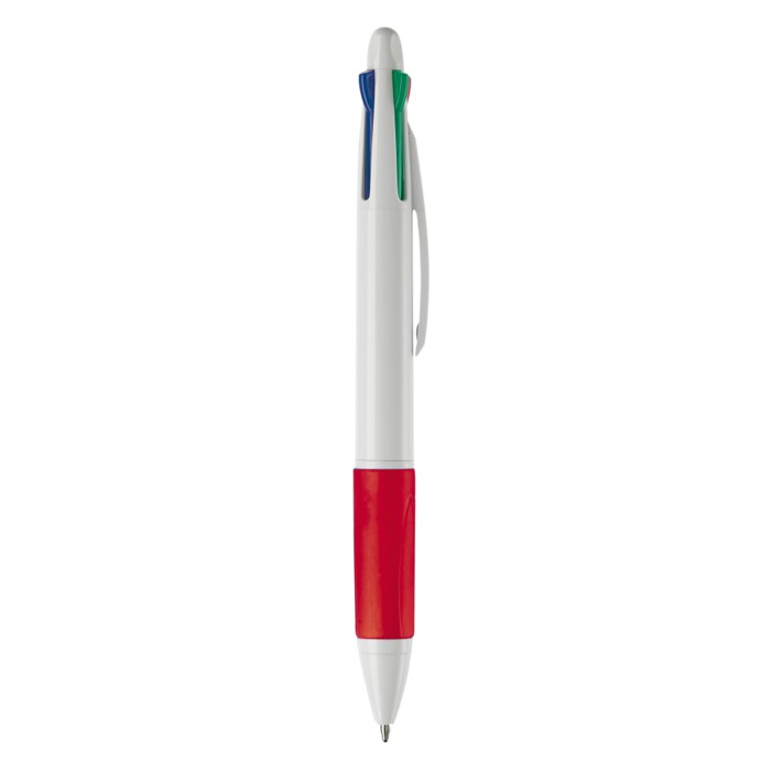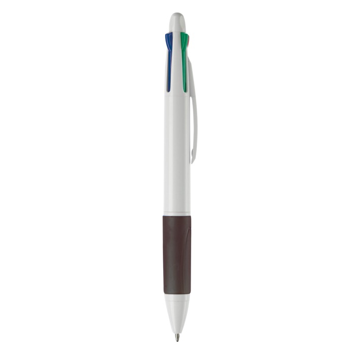 Caneta 4 em 1 branca com 4 cores de escrita e pega colorida.