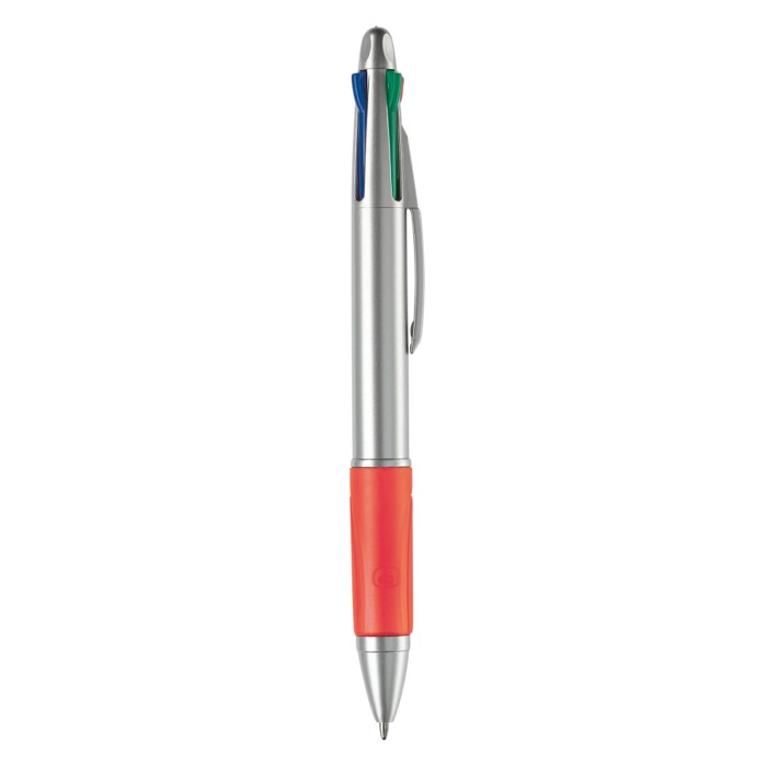 Caneta publicitária multifunções 4 em 1 com pega colorida