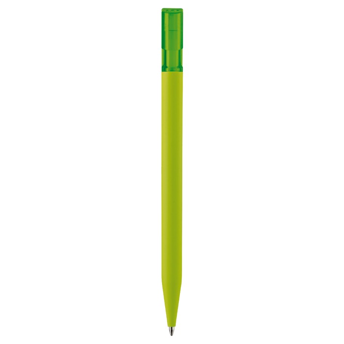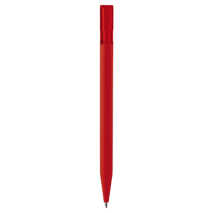 Caneta popular com corpo suave ao toque e clipe transparente. Esta caneta é produzida na Alemanha e tem uma recarga X20.