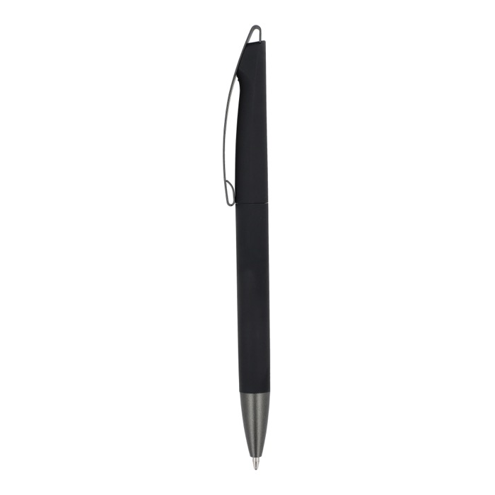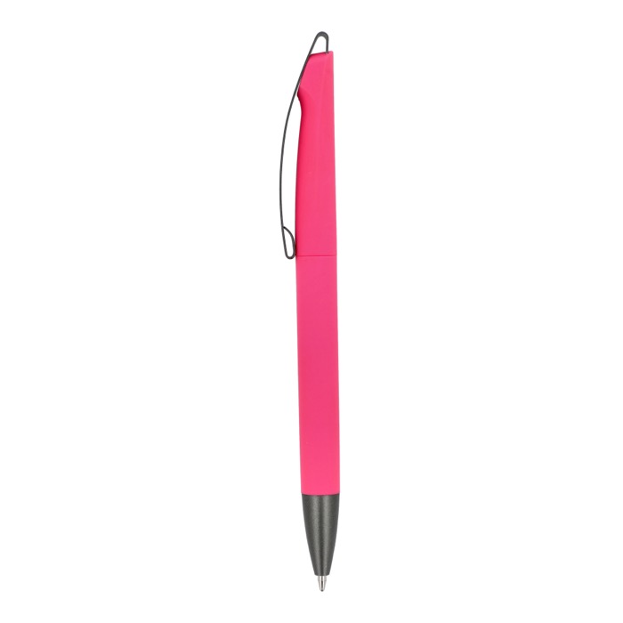 Caneta de plástico com acabamento macio e clipe metálico, projetada para uso diário no escritório e eventos. A escrita a tinta azul proporciona um traço constante para tomar notas, assinar documentação ou atender clientes ao balcão. O cartucho jumbo alonga a vida útil e diminui a frequência das recargas. Disponível numa ampla gama de cores atuais para a adaptar a campanhas distintas. Boa opção para ações de marketing, feiras e material empresarial com logo.
