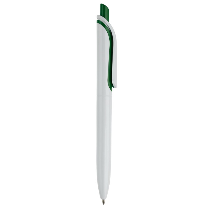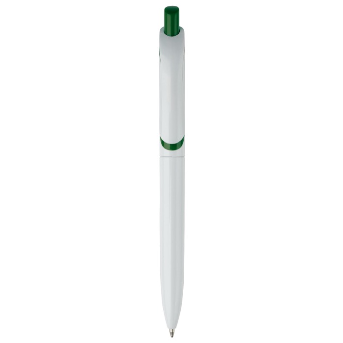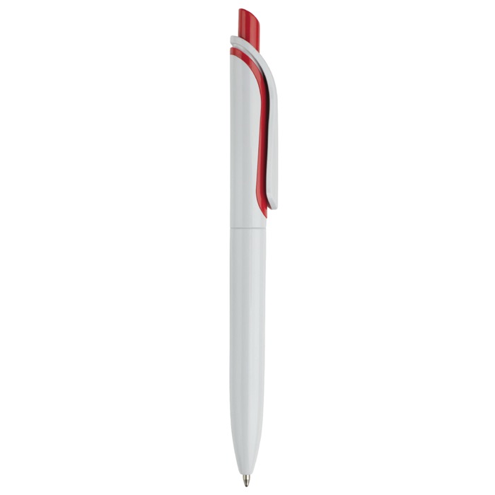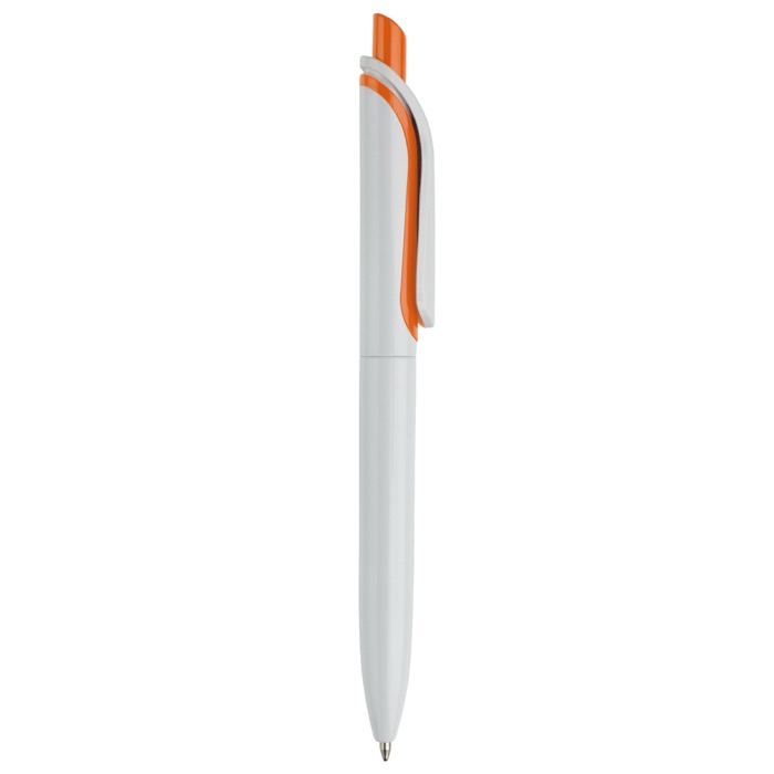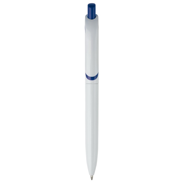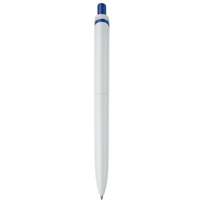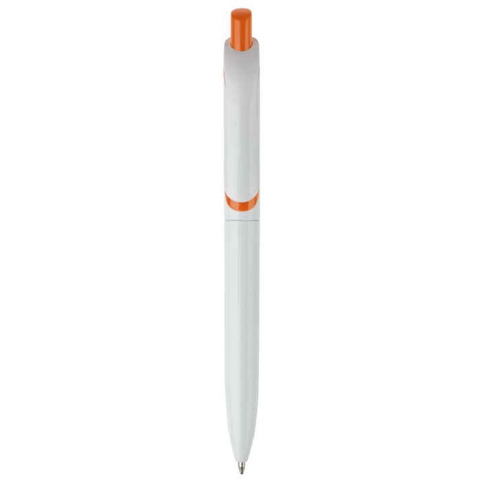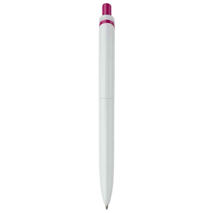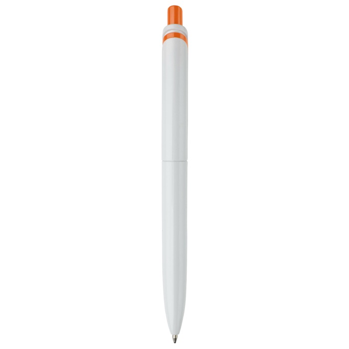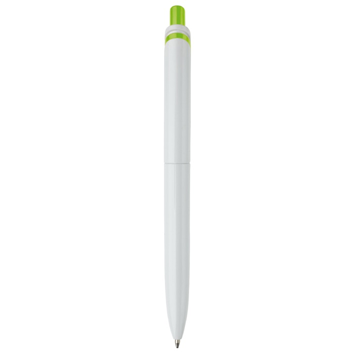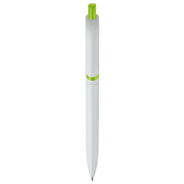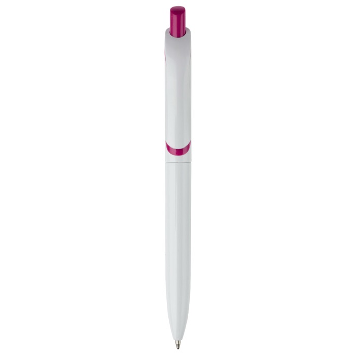 Caneta de plástico branca com botão em cores vivas feita na EU