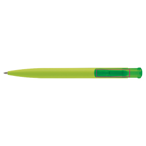 Caneta popular com corpo de toque suave e clipe transparente. Esta caneta é produzida na Alemanha e possui uma recarga gigante para escrever até 4,5 km.