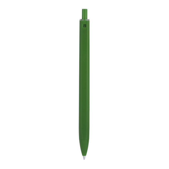 Caneta de plástico com mecanismo de botão e escrita a tinta azul. Exibe acabamento mate e botão a condizer com a cor do corpo, o que mantém a uniformidade no design. A frente lisa com contorno dá-lhe uma pega confortável e superfície prática para a marcação. Solução simples para uso diário no escritório, receção ou visitas comerciais. Recomendada para ações de branding em feiras, formações ou entregas a equipas internas.