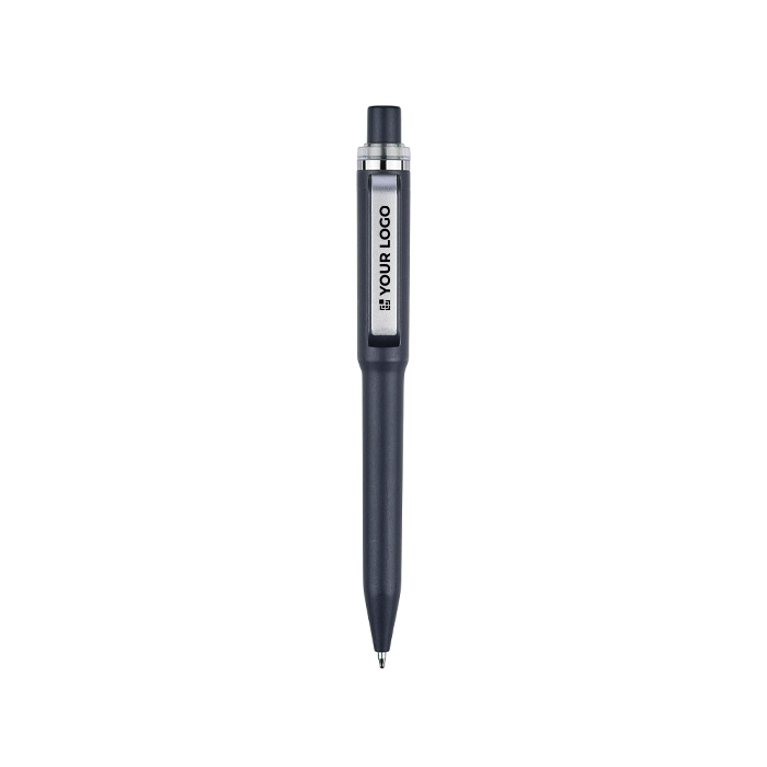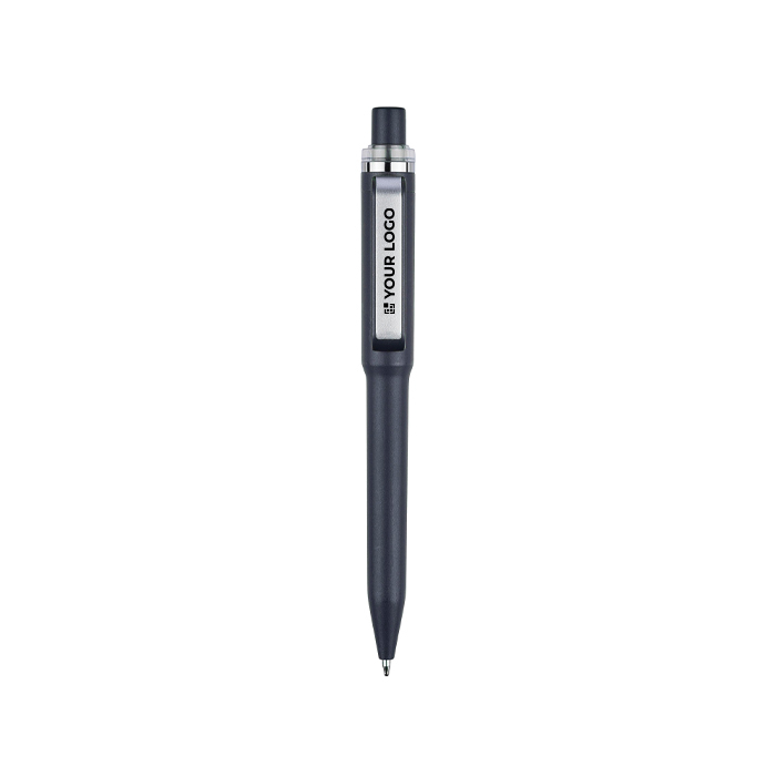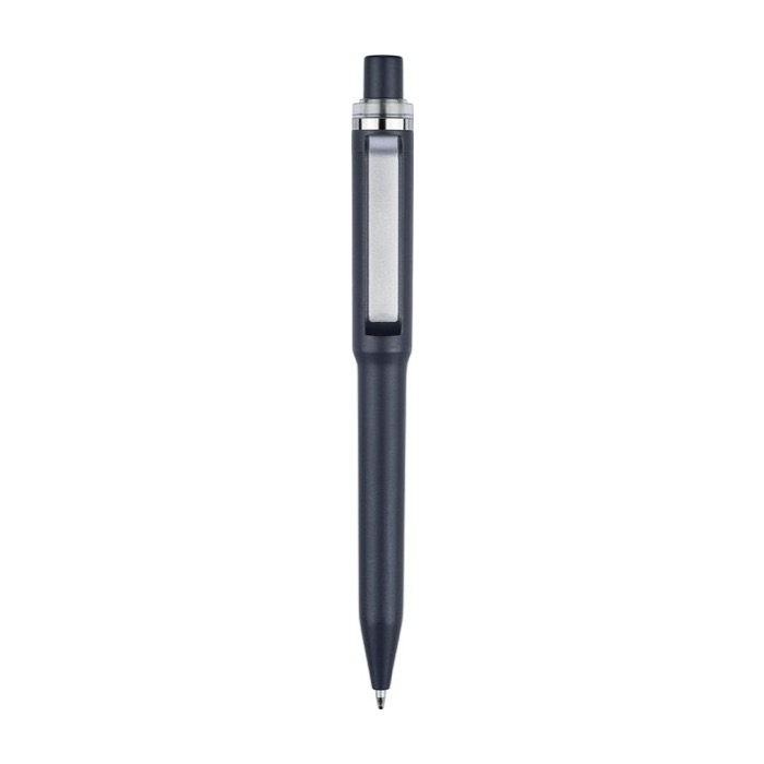 Caneta de plástico reciclado com clip e anel cromado tinta azul