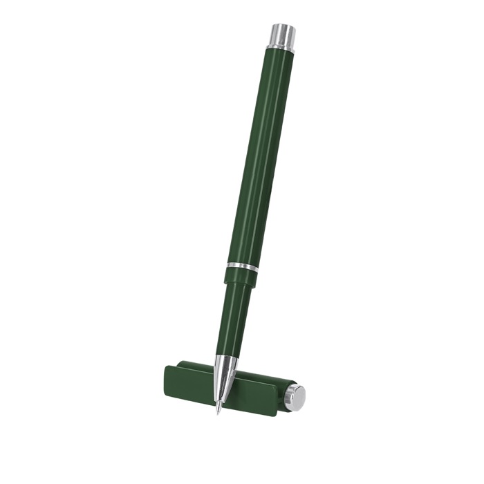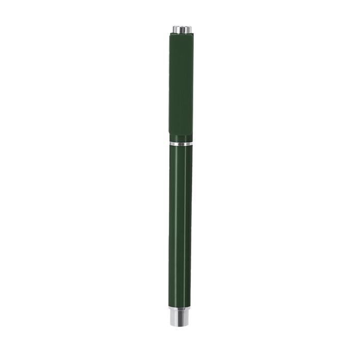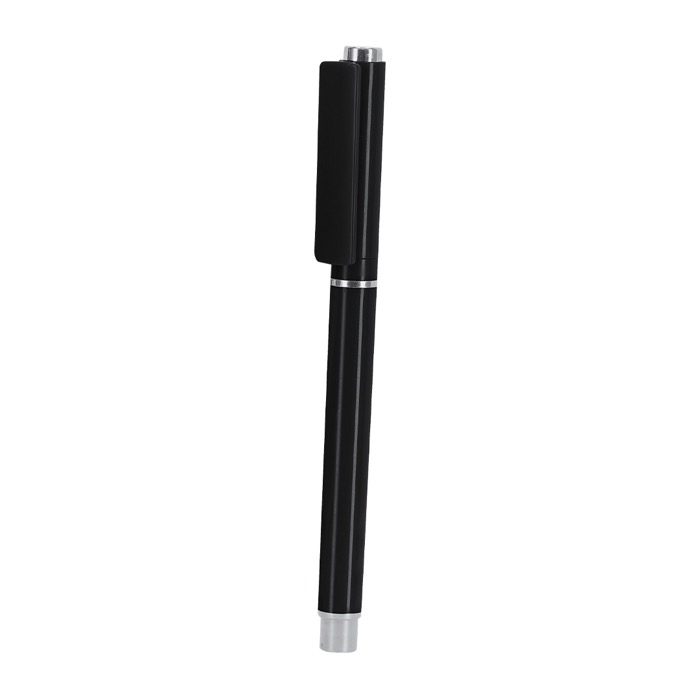 Roller de plástico reciclado com acabamento sólido e detalhes prateados, concebido para uso diário no escritório. Inclui cartucho jumbo com escrita azul para alongar o rendimento entre recargas. O fecho de tampa protege a ponta e evita manchas nos bolsos ou estojos. Dispõe de selo rABS (plástico reciclado), útil para comunicar a origem do material em ações internas. Opção prática para entregas em feiras, formações, boas-vindas de colaboradores ou como reclame de marca em reuniões.