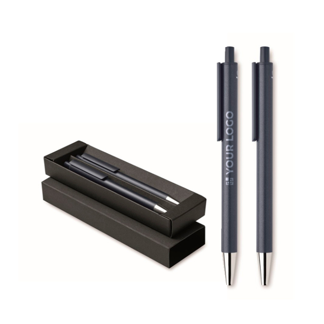 Combine funcionalidade e modernidade com este conjunto que tem uma caneta de botão e uma caneta sem tinta na altura de oferecer merchandising de escrita.