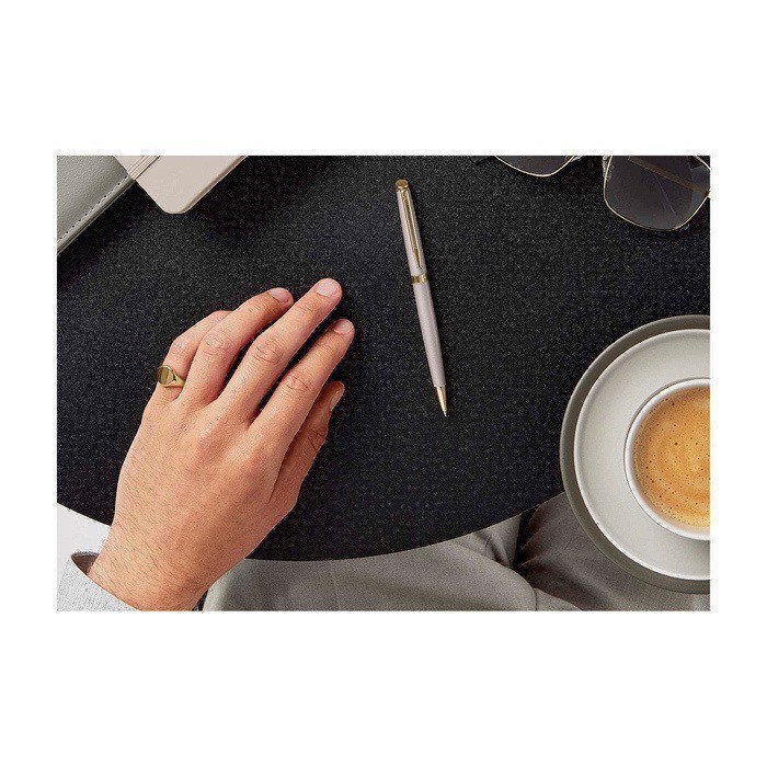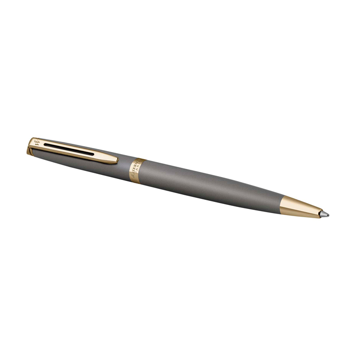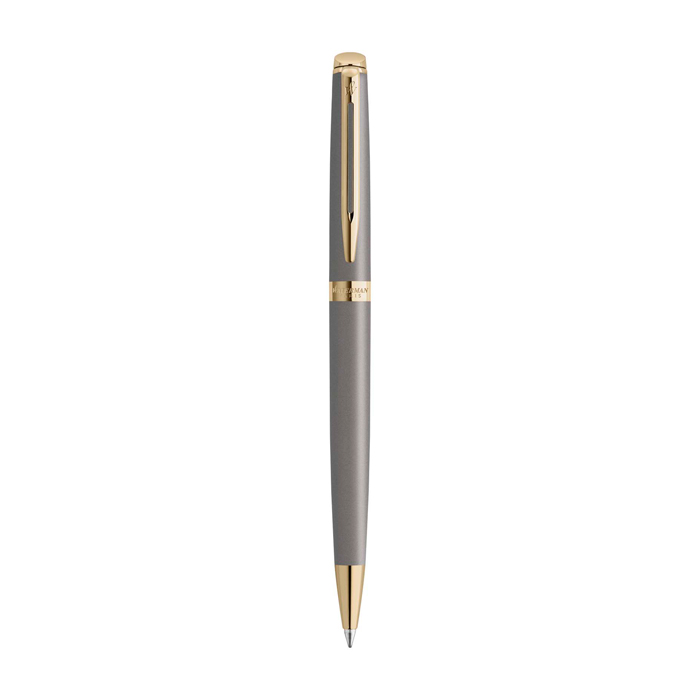 Caneta de corpo e tampa lacados com acabamento metalizado, concebida para escrita diária cuidada e constante. O design inclui rebordo dourado claro e clipe duplo ramificado com o selo Waterman; de aspecto neutro e intemporal que encaixa em ambientes corporativos. A ponta com tinta de secagem rápida proporciona um traço fluido e limpo em azul. Fabricada na França e entregue em caixa-oferta da marca, inclui garantia internacional de 2 anos. Recomendada para brindes empresariais, eventos e ações de fidelização com imagem premium.
