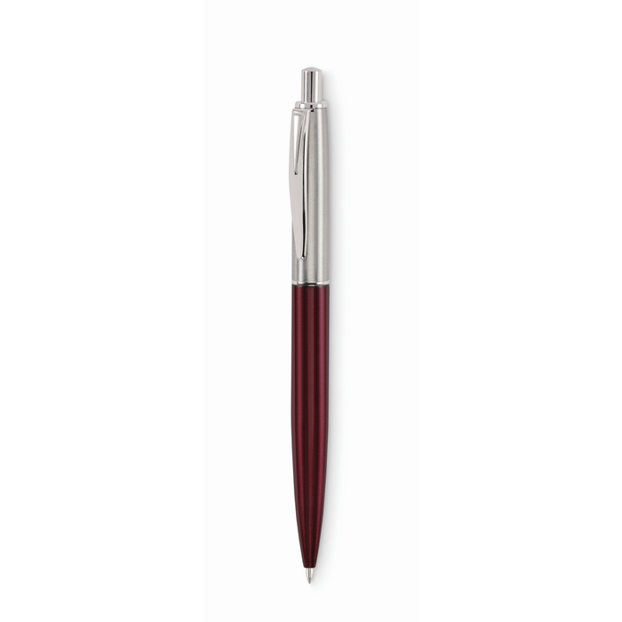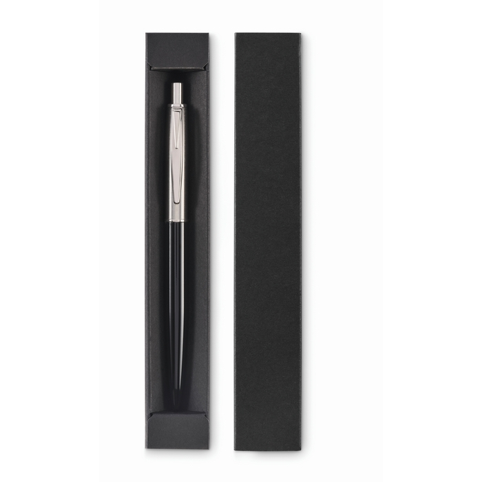 Caneta com botão de aço inoxidável em estojo, tinta azul