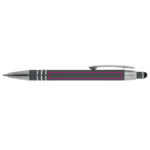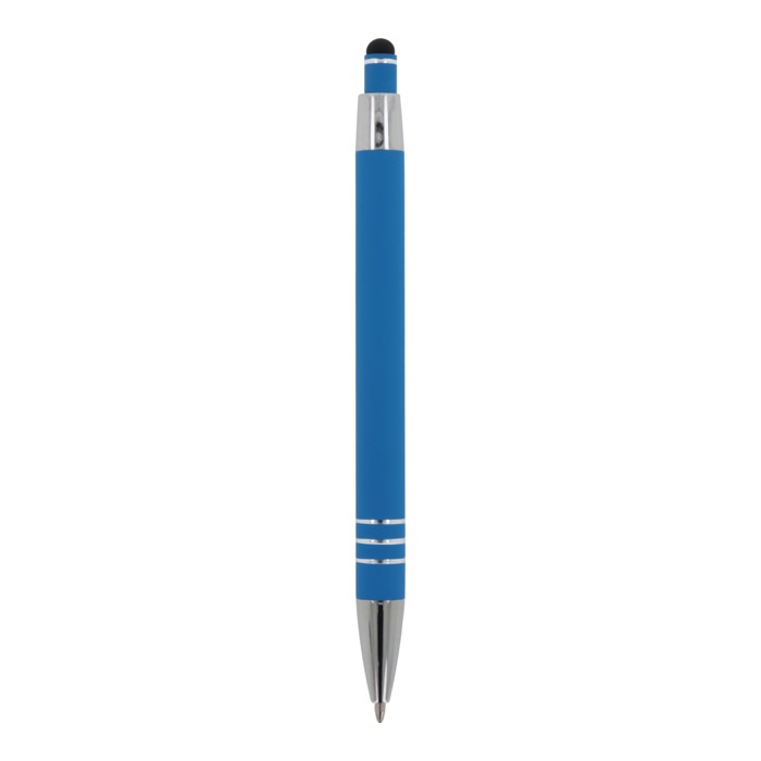 Caneta de alumínio com elegante acabamento suave ao toque e ponta touch. Com clip de metal maciço. Cor da escrita: azul.