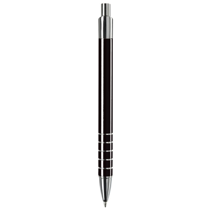 Caneta personalizável de tinta preta. Os seus acabamentos prateados conferem-lhe um design perfeito para a tornar no presente que liderará a sua campanha promocional.