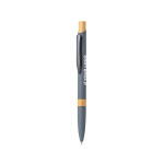 Elegante esferográfica de alumínio com mecanismo pulsador. Corpo em resistente alumínio de acabamento aborrachado mate e detalhes em bambu, com corpo numa ampla gama de cores distintas. Clip metálico, de carga jumbo e tinta azul. Apresentada numa bolsa individual reciclada.Materiais como o bambu promovem a utilização de matérias-primas naturais, reduzindo as emissões poluentes. Provém de uma planta de grande resistência e versatibidade, com crescimento e regeneração rápidos, o que o torna uma excelente alternativa à utilização da madeira tradicional.