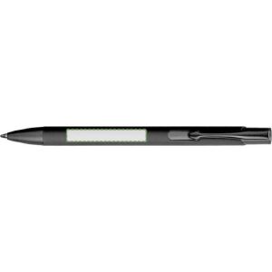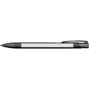 Caneta de alumínio reciclado com revestimento de borracha. Clipe metálico e ponta de plástico. Aprox. 800 metros de comprimento de escrita. Inclui logótipo gravado de alumínio reciclado. Tinta azul.