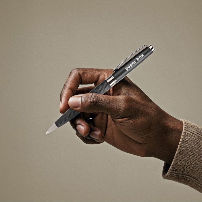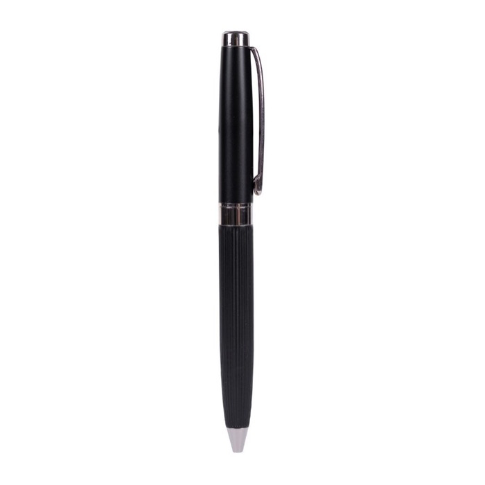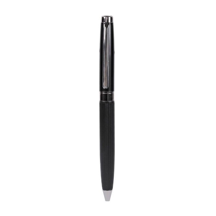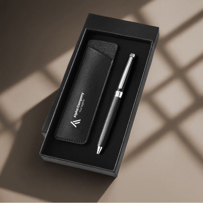Caneta de metal com estojo elegante de couro sintético, tinta azul
