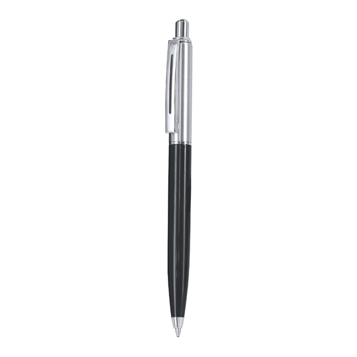 Caneta de acabamento metalizado com mecanismo de botão e ponta retráctil, projetada para uso confortável no quotidiano. Dispõe de cartucho interior clássico com tinta azul para escrita constante e recarga simples O clipe metalizado torna-a fácil de levar no bolso, caderno ou credencial. A metade do corpo em cor solida brilhante diferencia departamentos, equipas ou ações pontuais. Opção prática para eventos, formações e eventos corporativos com marcação.