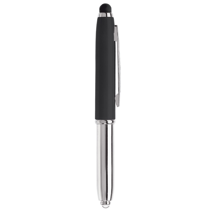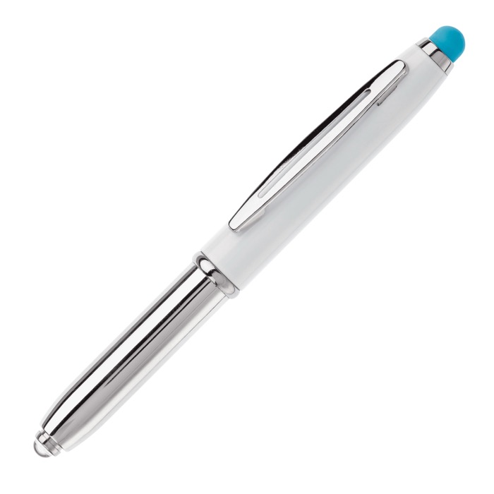 Caneta com ponta touch e luz. Tinta azul.
