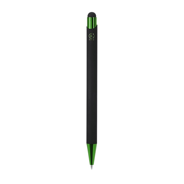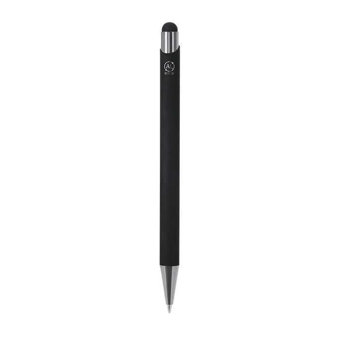 Caneta ponteira de alumínio reciclado com mecanismo de botão, projetada para uso diário no escritório e eventos. Dispõe de botão, clipe metálico e ponta com acabamento brilhante para um visual cuidado em reuniões. O corpo com ponta de borracha foi concebido para gravação a laser, conseguindo um efeito espelhado que destaca o logótipo. Inclui selo de alumínio reciclado na parte superior. Utiliza recarga jumbo e escrita a tinta azul, útil para assinaturas e notas rápidas em receções ou feiras.