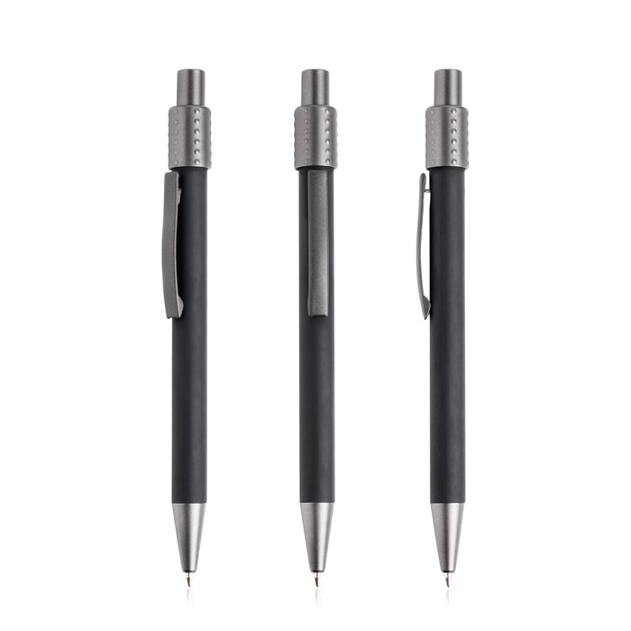 Caneta de alumínio barata com corpo de borracha e tinta preta Glober
